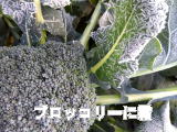 ブロッコリーに霜が降りた。まるで霜が針のように葉に刺さっている。