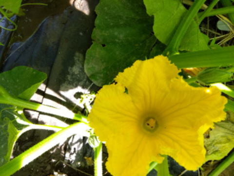 大きなめだつ花。雄花と雌花があるが今年は雌花の数がとても少ない。